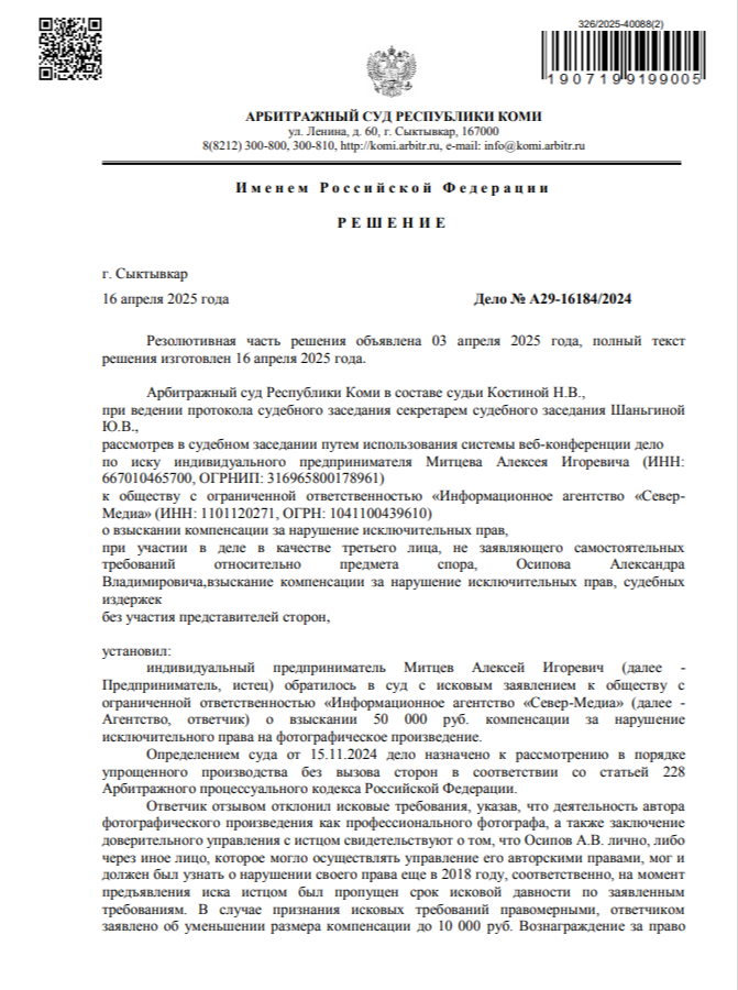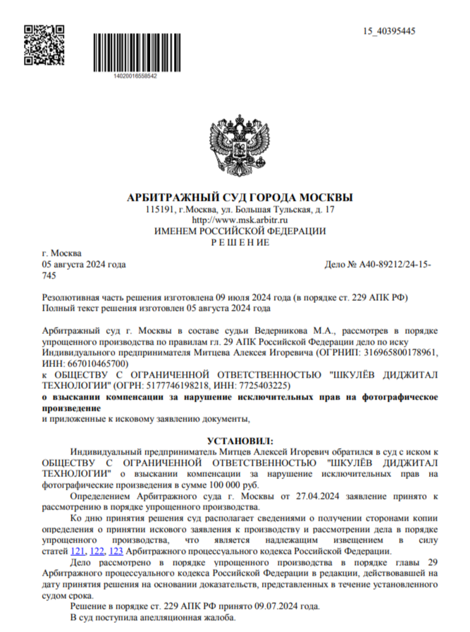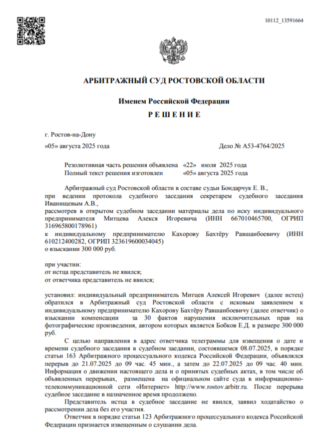 Правообладатель обратился к нам для проверки фактов возможного незаконного использования его интеллектуальной собственности. В ходе анализа мы установили, что размещённый на вашем ресурсе контент принадлежит автору.