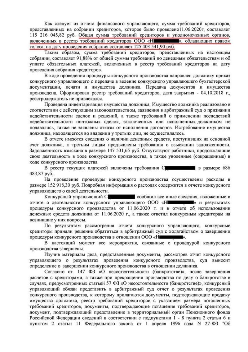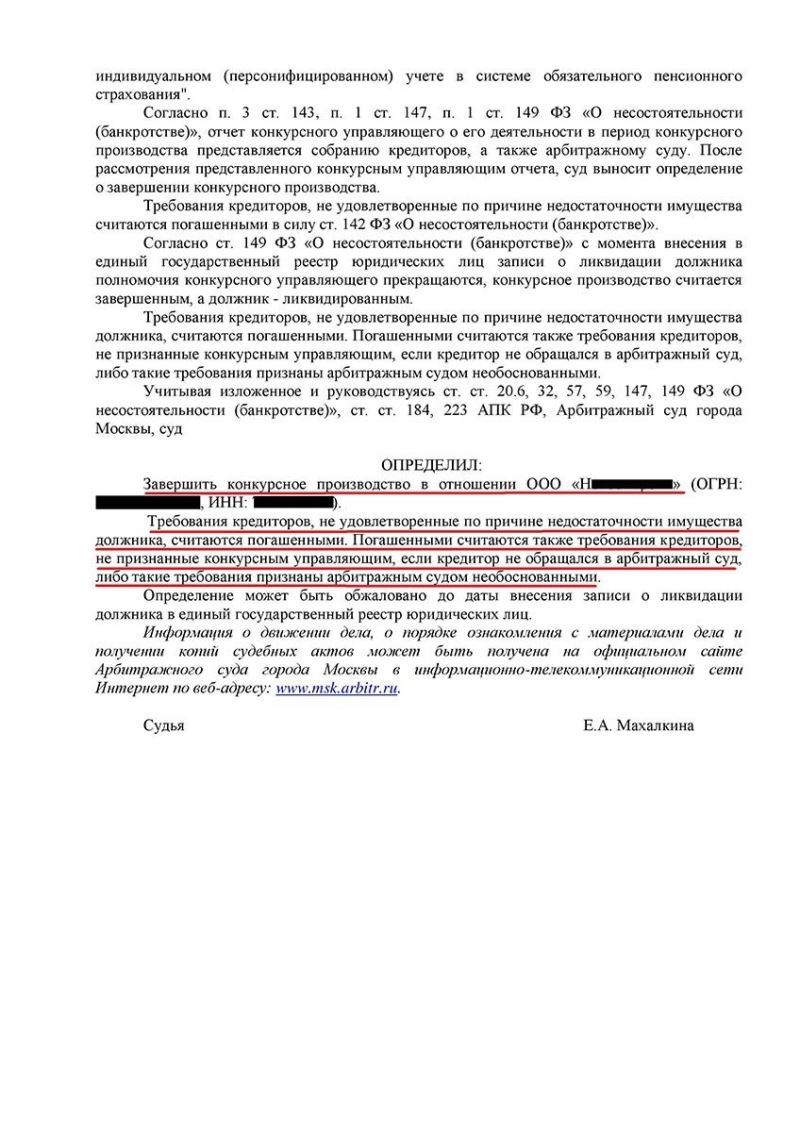 Завершено конкурсное производство и списаны долги