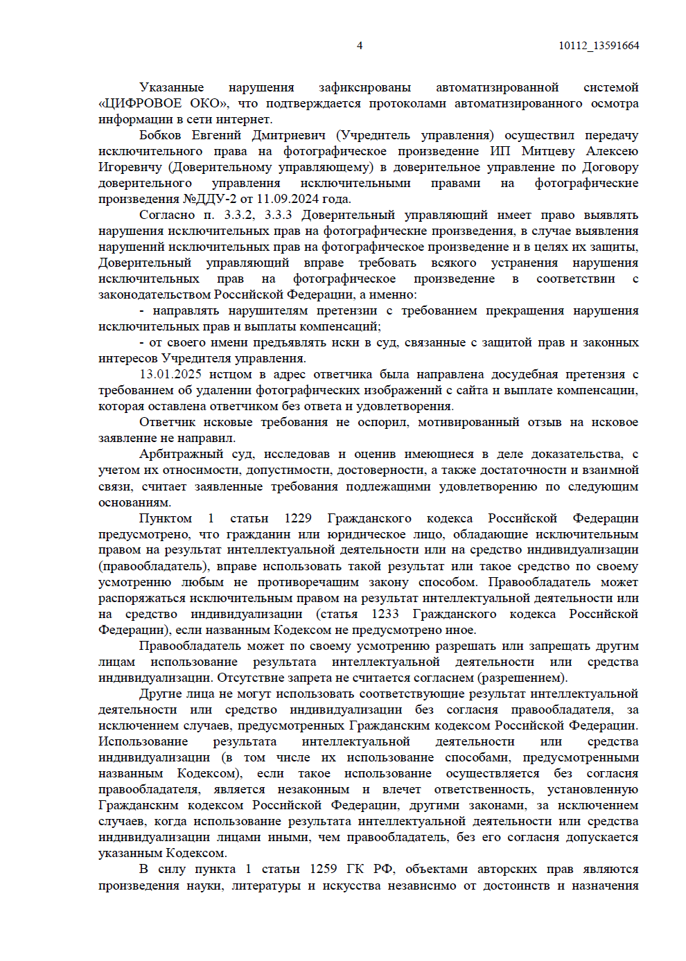• неоспоримая цифровая фиксация. Для подтверждения факта воспроизведения и доведения до всеобщего сведения 30 фотографий мы использовали Протоколы автоматизированного осмотра информации в сети Интернет (система «ЦИФРОВОЕ ОКО»). Эти документы стали надежной доказательственной базой, принятой судом;