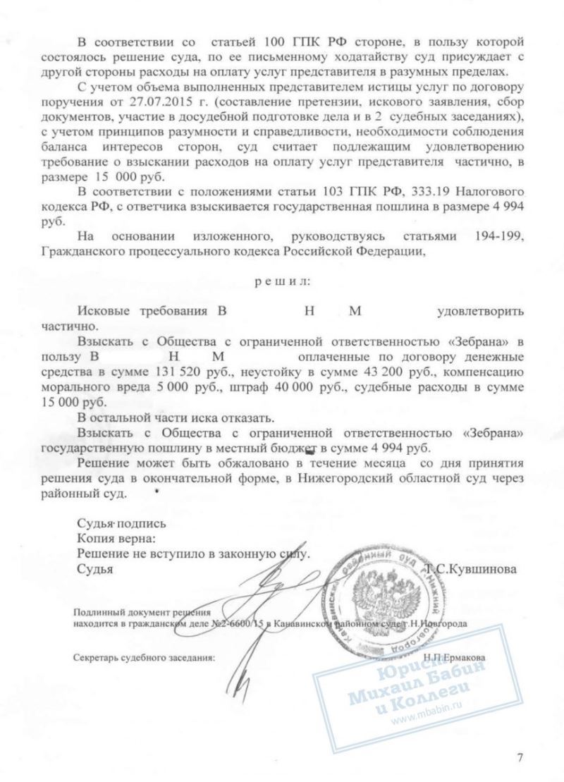 • По иску о защите прав потребителя взыскана трехкратная стоимость услуги