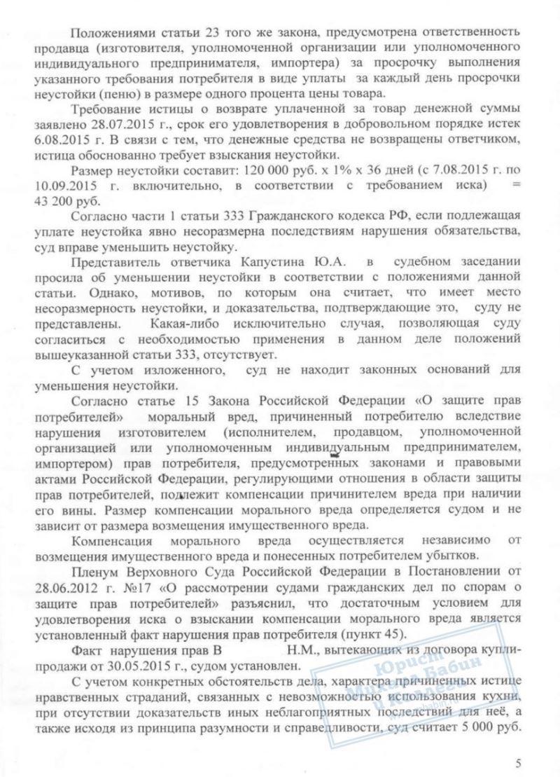 Юрист добился снижения штрафа за неудовлетворение требований потребителя более чем в 2 раза