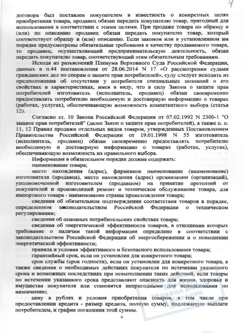 • С магазина взыскана трехкратная стоимость товара и судебные расходы